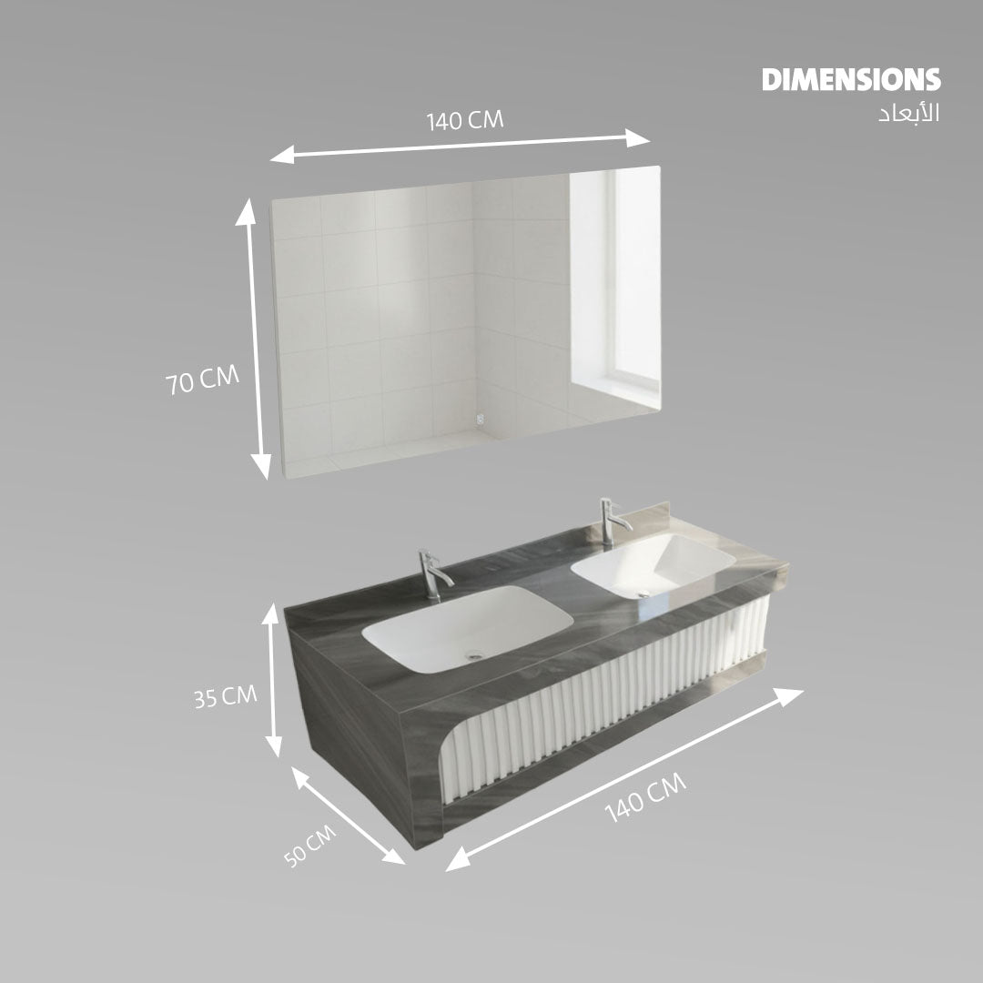 مغسلة بورسلان FLAGON 140 سم - حوض حمام فاخر أبيض FL37