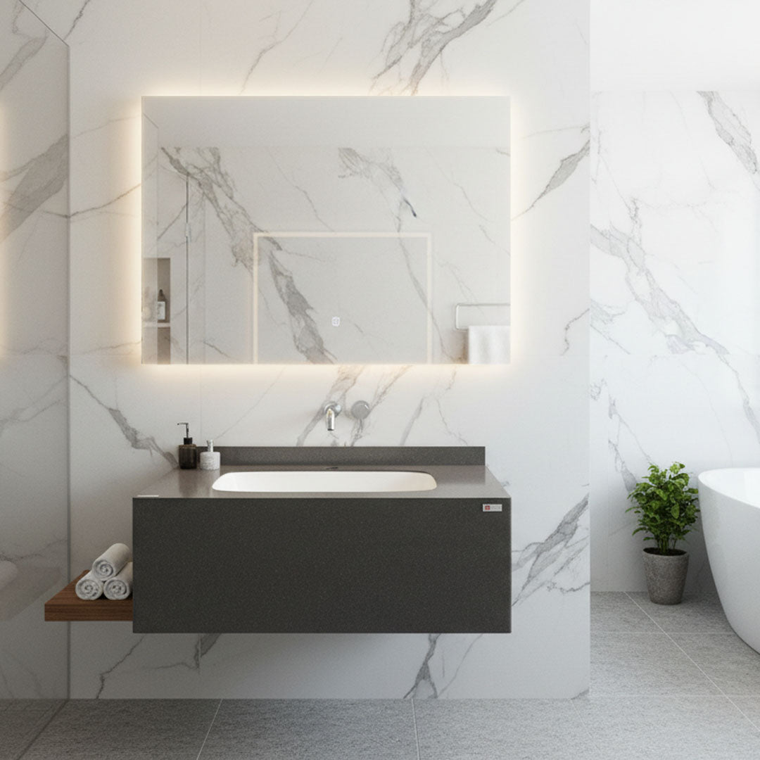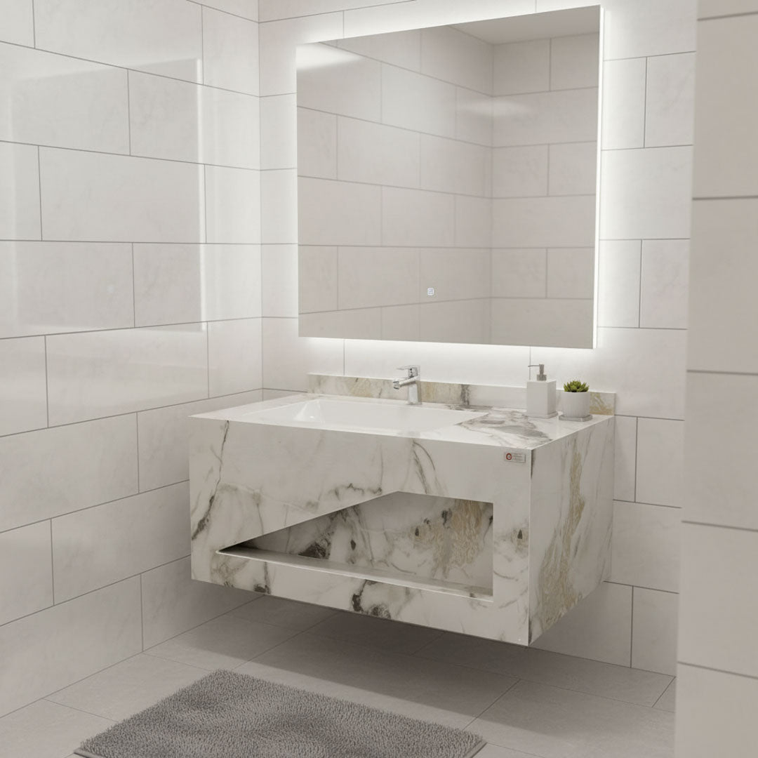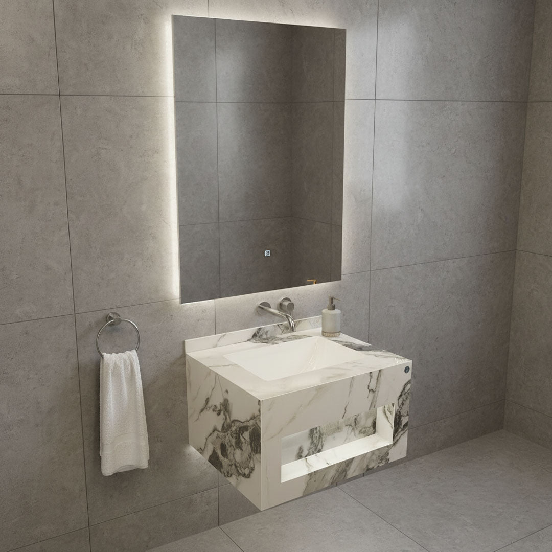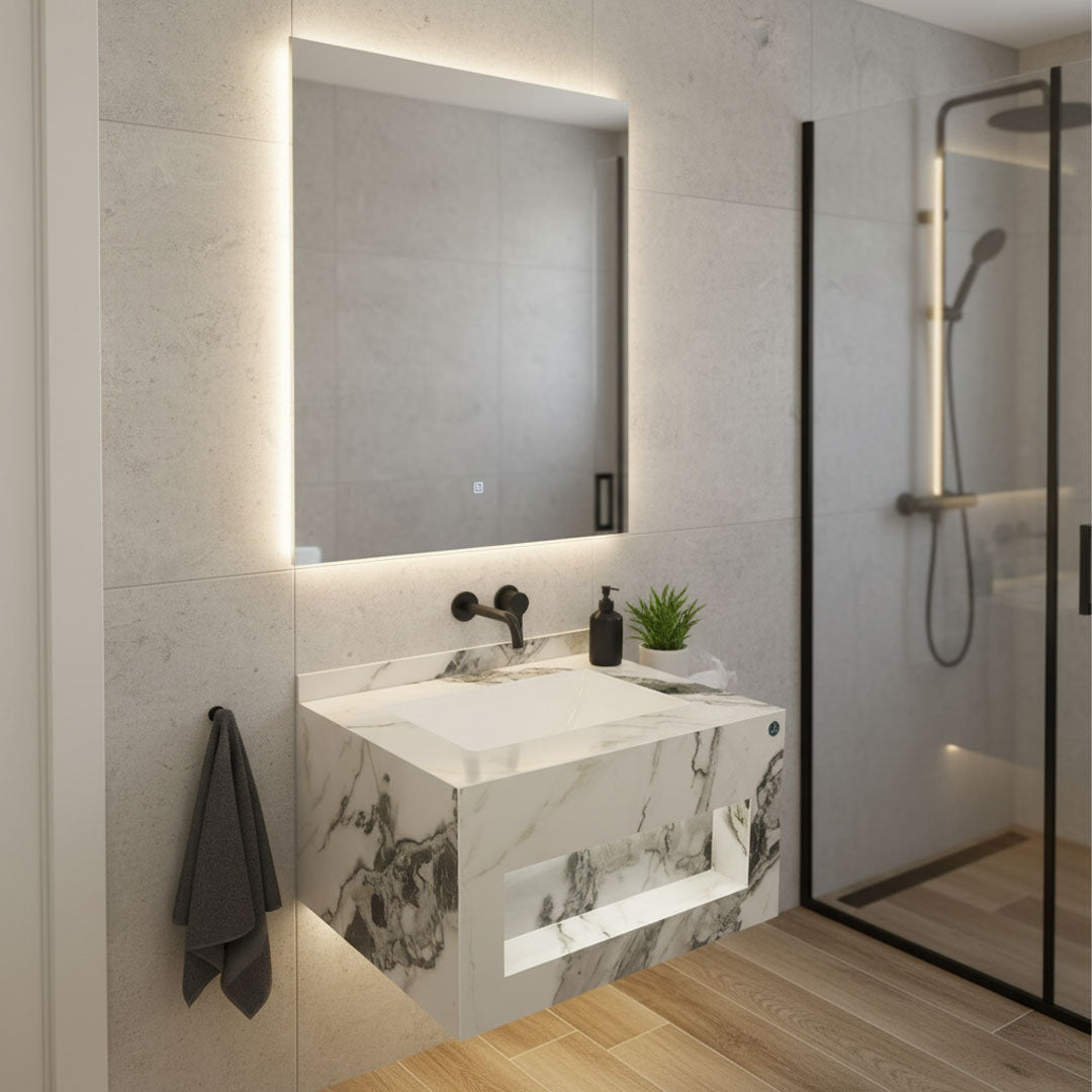 مغسلة بورسلان مقاس 80 سم باضاءة ليد حوض قص ليزر مرايا ليد 3 FLAGON