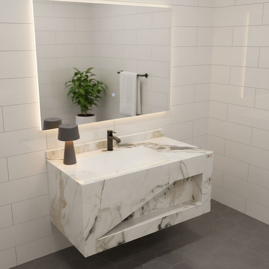 مغسلة بورسلان بدرج مقاس 80 سم باضاءة ليد حوض قص ليزر مرايا ليد 3 FLAGON