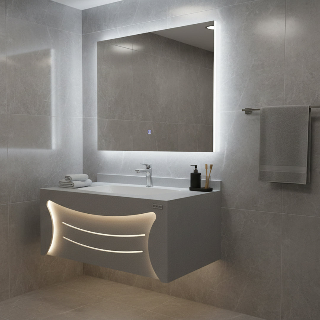 مغسلة بورسلان فلاقون 60 سم أبيض مع رمادي - حوض حمام فاخر موديل FL37