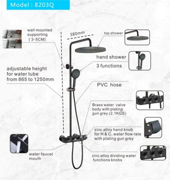 مسطرة دش اسود FLAGON GMJ-SR350 - شاور بار حمام فاخر