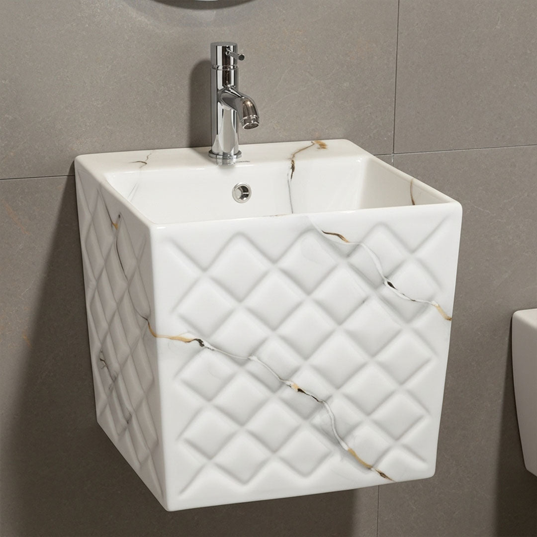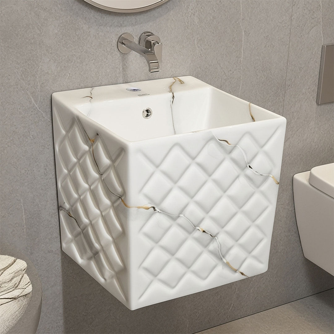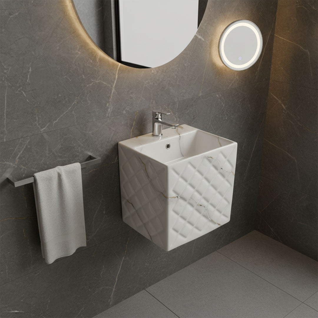 مغسلة بورسلان فلاقون 80 سم رخامي - حوض حمام فاخر موديل 2026 SR-1539