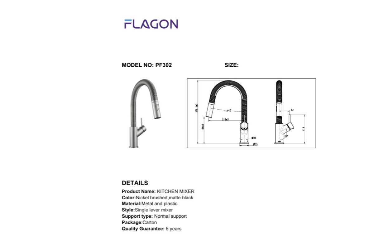 شطاف صحي كروم فاخر FLAGON موديل BP028-HY09-NK